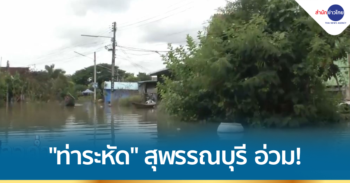 สุพรรณบุรี 19 ต.ค. – สุพรรณบุรียังอ่วม น้ำท่าจีนทะลักท่วม ชาวบ้านต้องใช้เรือพายเข้าออกหมู่บ้าน อย่าง ต.ท่าระหัด อ.เมือง เดือดร้อนกว่า 930 ครัวเรือน บางหมู่บ้านน้ำท่วมสูงกว่า 3 เมตร ขณะที่พื้นที่เศรษฐกิจและจุดสำคัญของจังหวัด อย่างโรงพยาบาลเจ้าพระยายมราช เริ่มเรียงกระสอบทรายแล้ว และผู้ประกอบการร้านค้าต่างนำอิฐมาก่อกำแพงป้องกันน้ำ ส่วนอ่างเก็บน้ำกระเสียว น้ำเต็มความจุแล้ว 100%.-สำนักข่าวไทย