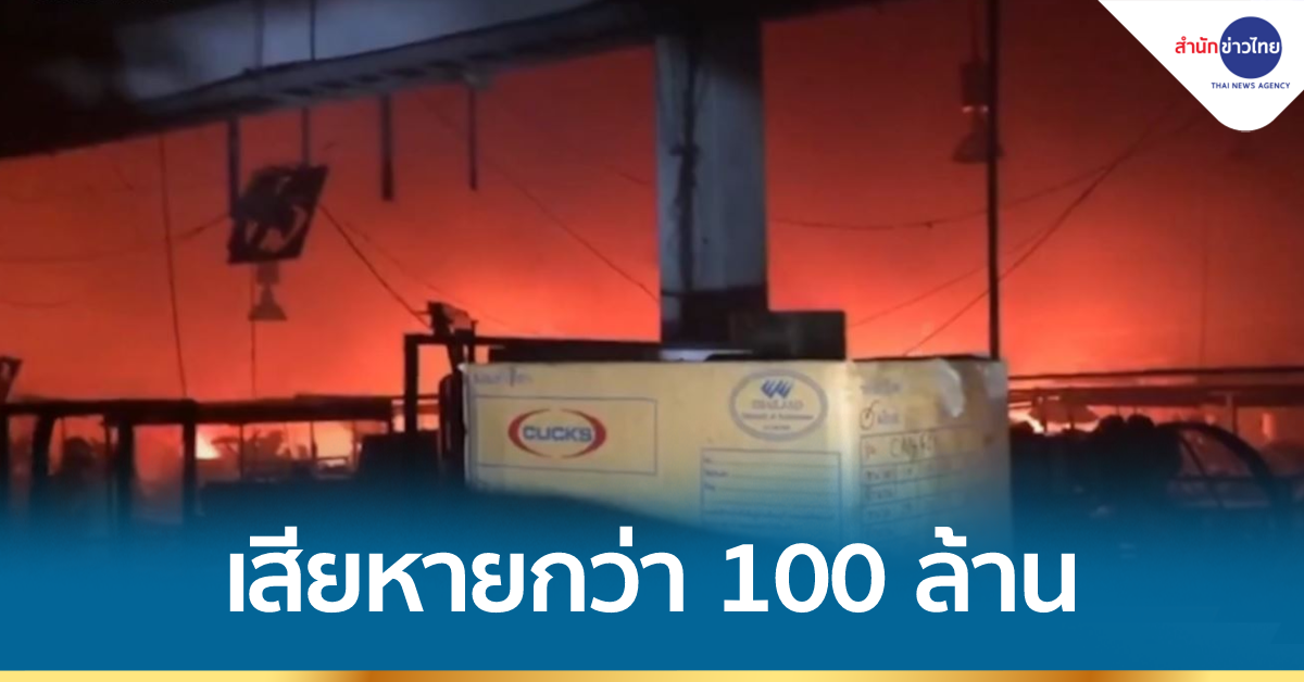 สมุทรปราการ 20 ต.ค.-คุมเพลิงได้แล้ว ไฟไหม้โรงงานรองเท้าย่านกิ่งแก้ว กลางดึกที่ผ่านมา คาดความเสียหายไม่ต่ำกว่า 100 ล้านบาท เจ้าหน้าที่เร่งตรวจสอบสารเคมีรั่วไหล