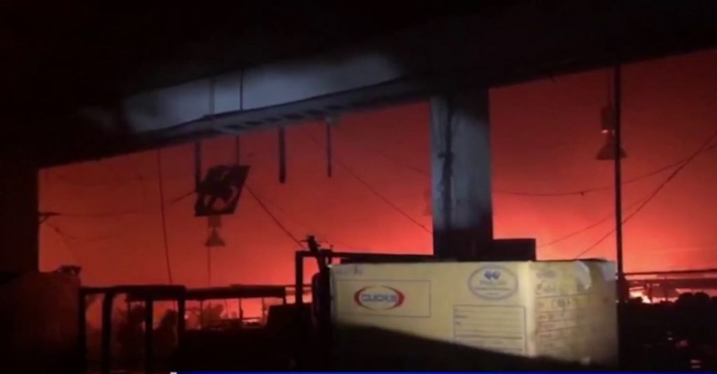 สมุทรปราการ 20 ต.ค. – เหตุไฟไหม้โรงงานรองเท้าย่านกิ่งแก้ว กลางดึก มูลค่าความเสียหายไม่ต่ำกว่า 100 ล้าน ขณะที่เช้านี้พนักงานกว่า 200 คนที่ไม่รู้อิโหน่อิเหน่เดินทางไปทำงาน กลับถูกโรงงานเรียกไปบอกว่าเลิกจ้าง ไม่ต้องมาทำงานอีก เพราะโรงงานปิดกิจการแล้ว