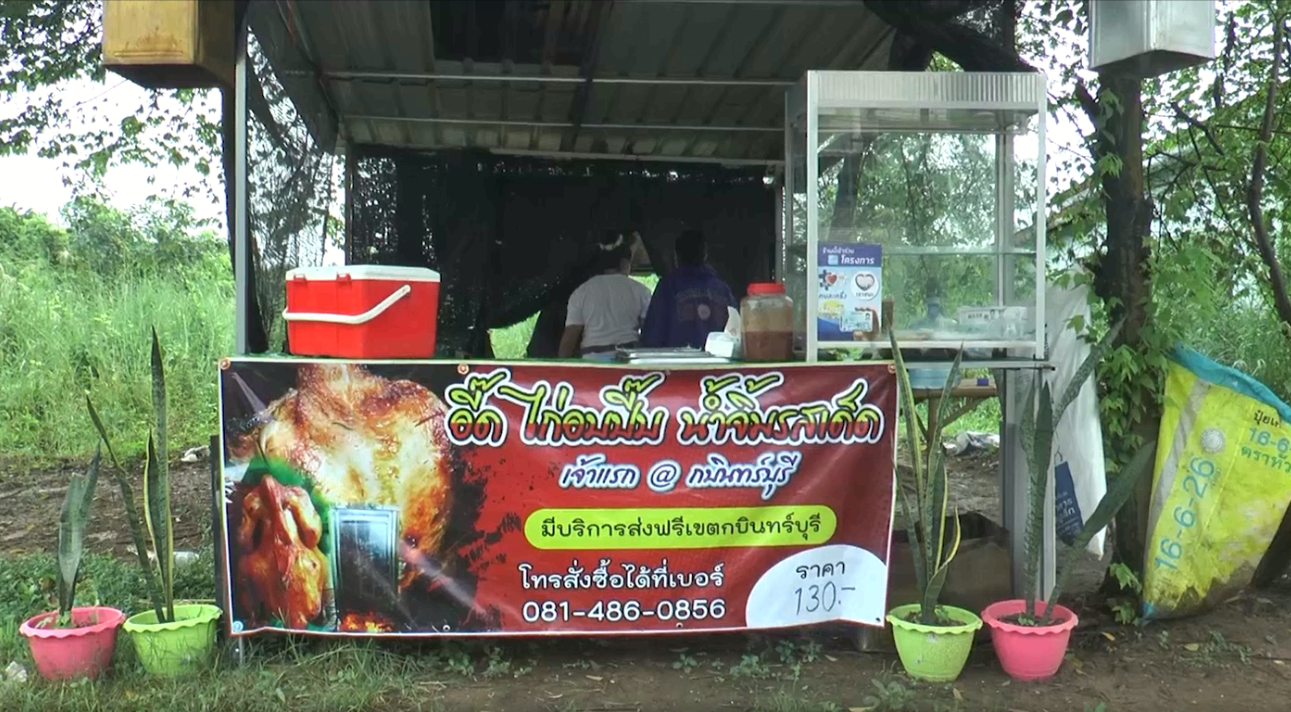 อี๊ด หรือ ธัญลักษณ์ กัณหะรัตนธรรม ในวัย 42 อดีตสาวโรงงานในนิคมแห่งหนึ่งใน อ.กบินทร์บุรี จ.ปราจีนบุรี ที่วันนี้ชีวิตพลิกผันมาเป็นแม่ค้าขาย ไก่อบปี๊บพริกไทยดำ อยู่ที่ถนนสายแยกปากท้อง – ทุ่งแฝก โดยมีสามีและลูกสาวคอยช่วยทุกอย่างตั้งแต่หมักไก่ อบไก่จนออกขายส่งให้ลูกค้า อี๊ด ธัญลักษณ์ เล่าว่าแม้โควิดจะทำให้หลายคนประสบปัญหา