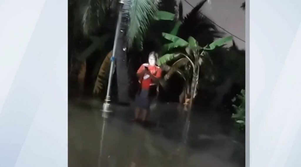 พลเมืองดีอัดคลิปวิดีโอ เผยความเดือดร้อนของคนขี่รถจักรยานยนต์รับจ้างคนหนึ่ง ยืนอยู่กลางน้ำท่วม ส่วนรถที่ใช้ทำมาหากิน ตกถนนจมหายไปในน้ำที่ท่วมสูง บนเกาะเกร็ด ตำบลเกาะเกร็ด อำเภอปากเกร็ด จังหวัดนนทบุรี ซึ่งหญิงคนขี่เอารอดตัวขึ้นมาได้ แต่นอกจากรถจะจมไปในน้ำแล้ว กระเป๋าเงิน ยังหายไปด้วย ภายหลังพลเมืองดีก็ช่วยกู้รถขึ้นมาได้อย่างทุลักทุเล