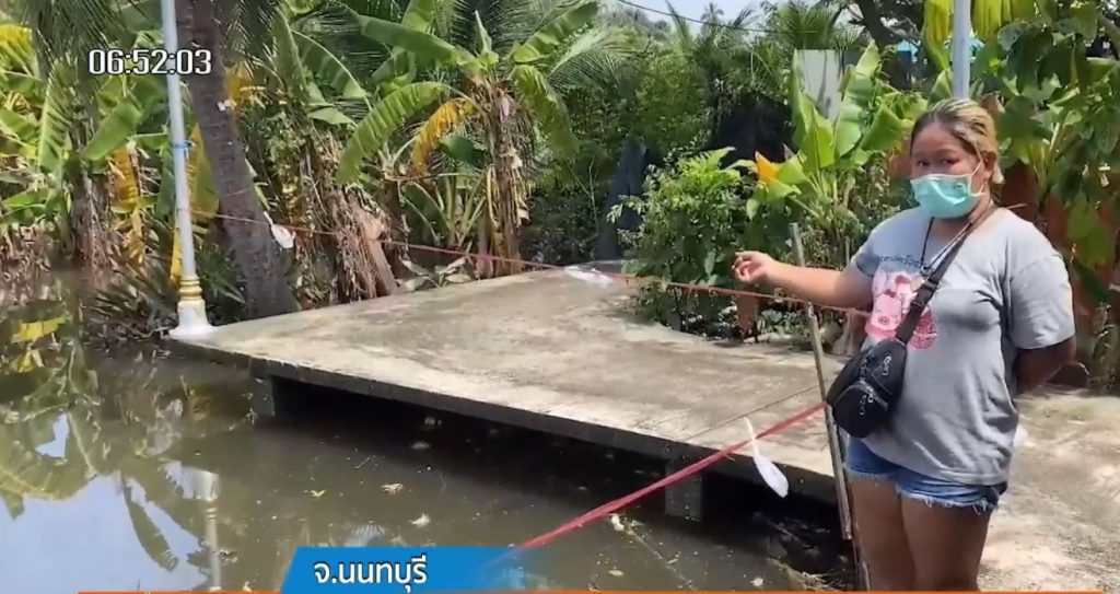 ทีมข่าวไปพูดคุยกับนางสาว รินลดา บุรกรณ์ อายุ 40 ปี คนขี่รถจักรยานยนต์รับจ้าง เล่าว่า เมื่อเวลา 19.00 น. ของวันที่ 19 ตุลาคม ที่ผ่านมา ตนขี่รถจะกลับบ้าน เป็นช่วงที่น้ำท่วมขึ้นสูงมาก ทำให้รถติดๆ ดับๆ 3-4 รอบ ตนจึงเลี่ยงทางน้ำท่วมสูงแล้วมาทางลัดเส้นนี้ ยอมรับว่า ไม่ชินทางและเป็นโค้งหักศอก ประกอบกับมืดมาก ทำให้ตนไม่เห็นขอบถนน จึงขี่มาเรื่อยๆ แล้วจู่ๆ ทางก็หาย ทั้งตนทั้งรถตกลงไปในน้ำ ตนก็พยายามว่ายน้ำเอาชีวิตรอด ตอนนั้นกลัวมาก เพราะระดับน้ำสูงมิดหัว ซึ่งทางที่ตนตกลงไปเป็นสวนที่ถูกน้ำท่วมขัง