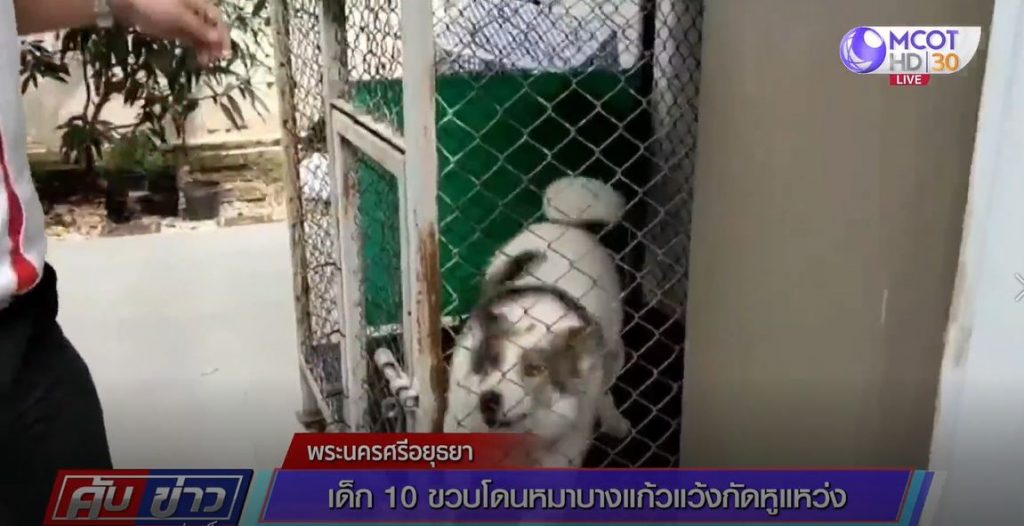 อยุธยา 21 ต.ค. – สุนัขพันธุ์บางแก้วตกใจ กระโดดกัดเด็กชายวัย 10 ขวบ หูข้างซ้ายขาด ส่วนสุนัขเจ้าของบ้านซึ่งเป็นพ่อของเด็ก 10 ขวบ นำไปขังไว้ในกรงหลังบ้าน