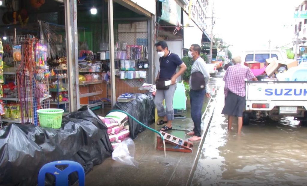 ช้างเผือก ประโดก โคกไผ่ ถนนสายเศรษฐกิจของตำบลหมื่นไวย อำเภอเมืองนครราชสีมา ถูกน้ำทะลักเข้าท่วมเข้าสู่วันที่ 3 แล้ว แต่น้ำเพิ่งเริ่มลดเมื่อวานราว 10 เซนติเมตร เหลือเท่าระดับทางเท้า ร้านค้าต่างๆ ยังไม่สามารถเปิดจำหน่ายได้ ทำได้เพียงเริ่มทำความสะอาด เพื่อเตรียมกลับมาเปิดอีกราว 2-3 วันข้างหน้า ตำบลหมื่นไวย เป็นพื้นที่รับน้ำทั้งจากลำตะคอง และลำบริบูรณ์ จึงได้รับผลกระทบอย่างหนัก น้ำลดลงอย่างช้าๆ ไม่เหมือนโซนเทศบาลนครนครราชสีมา ที่รับน้ำเฉพาะลำตะคอง น้ำจึงลดเร็วกว่า ล่าสุดลดจากระดับสูงสุดเมื่อ 2 วันก่อนกว่า 70 เซนติเมตรแล้ว