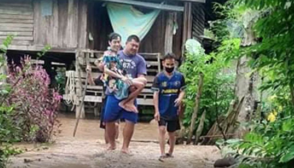 ลำปาง 22 ต.ค.-ในรอบ 20 ปี! ฝนตกหนัก น้ำป่าทะลักไหลล้นอ่าง ท่วมหมู่บ้านบ่อฮ้อ อ.งาว จ.ลำปาง ชาวบ้านอุ้มผู้ป่วยติดเตียงออกมา