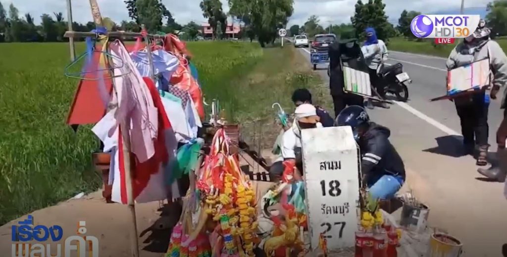 ยายท่านหนึ่งที่เดินทางมาจาก อ.สุวรรณภูมิ จ.ร้อยเอ็ด บอกว่าเมื่องวดที่แล้วตนเองได้เลขมาจากหลักกิโลเมตรที่ 72 โดยสาบานไว้ว่าถ้าถูกเลขดังกล่าว ตนเองจะนำสิ่งของมาบริจาคและทำบุญถวายสังฆทานไปให้กับผู้ที่ล่วงลับไปแล้ว ที่มาสิงสถิตย์อยู่ภายในหลักกิโลเมตรหลักนี้