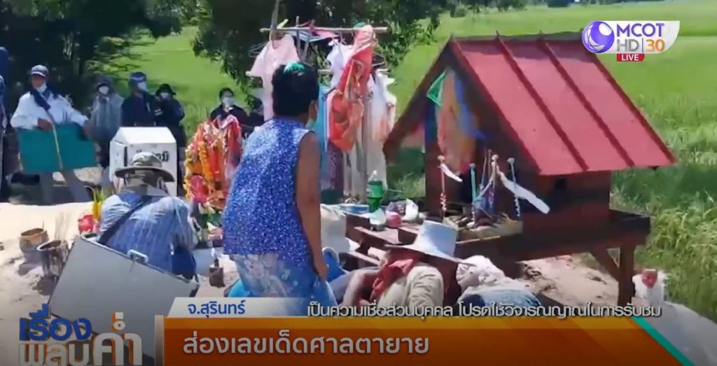 ขณะเดียวกันมีชาวบ้านในเขตพื้นที่ อ.ศีขรภูมิ จ.สุรินทร์ ถูกหวยงวดที่แล้วจากหลักกิโลเมตรจำนวนหลายแสนบาท นำเงินดังกล่าวมาซื้อศาลเจ้าปู่ตายาย โดยนำข้าวปลาอาหาร หัวหมู เหล้า เบียร์ มาเซ่นไหว้ในวันนี้อีกด้วย.-สำนักข่าวไทย