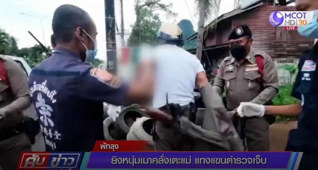 พัทลุง 22 ต.ค. – ตำรวจยิงสยบหนุ่มวัย 36 คลั่งยาใช้มีดไล่แทงครอบครัว ตำรวจเข้าระงับโดนแทงแขนบาดเจ็บ ตำรวจแจ้งข้อหาพยายามฆ่าเจ้าพนักงาน