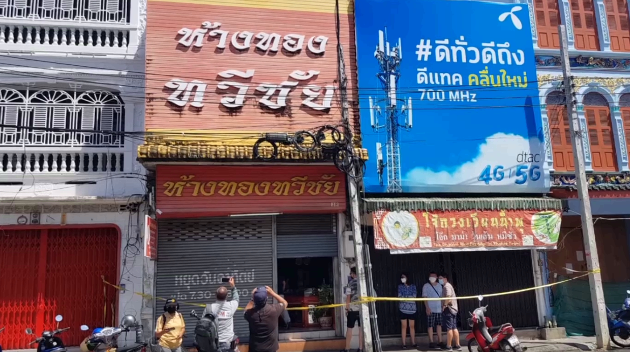 เจ้าหน้าที่พิสูจน์หลักฐานจังหวัดภูเก็ต เข้าตรวจสอบและเก็บหลักฐานต่างๆ ภายในร้านทองคำชื่อ “ห้างทองทวีชัย” ตั้งอยู่บริเวณถนนระนอง ต.ตลาดเหนือ อ.เมือง จ.ภูเก็ต หลังจากเมื่อช่วงกลางดึกที่ผ่านมาคนร้ายเป็นชาย 1 คน ได้ปีนหลังคาฝ้าเพดาน และเกิดการต่อสู้กับเจ้าของบ้านและเป็นเจ้าของร้าน ทราบชื่อคือ นายหวังดี อายุ 71 ปี กับนางพวงเพ็ญ อายุ 65 ปี โดยใช้ไม้หน้าสามทุบตีได้รับบาดเจ็บ ก่อนบังคับให้เปิดตู้เซฟ และกวาดทองคำรูปพรรณไปได้จำนวนหนึ่ง จากนั้นได้หลบหนีออกไปทางประตูหลังบ้าน