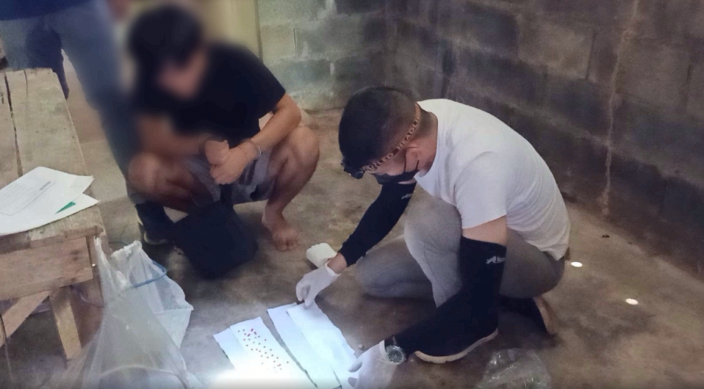 บึงกาฬ 24 ต.ค.- ชุดสืบสวน สภ.บึงโขงหลง จ.บึงกาฬ นำกำลังบุกจับวัยรุ่นมั่วยาเสพติดในพื้นที่หมู่ 13 บ้านโนนชมภู เบื้องต้นได้ของกลางยาบ้า 1 เม็ด จึงขยายผลไปอีกบ้าน พบวัยรุ่นแสดงอาการพิรุธ วิ่งเข้าห้องน้ำ และนำของกลางทิ้งโถส้วม เจ้าหน้าที่จึงต้องล้วงลงไปในโถส้วมเพื่อรักษาของกลาง และเเจ้งข้อหามียาบ้าไว้ในครอบครอง