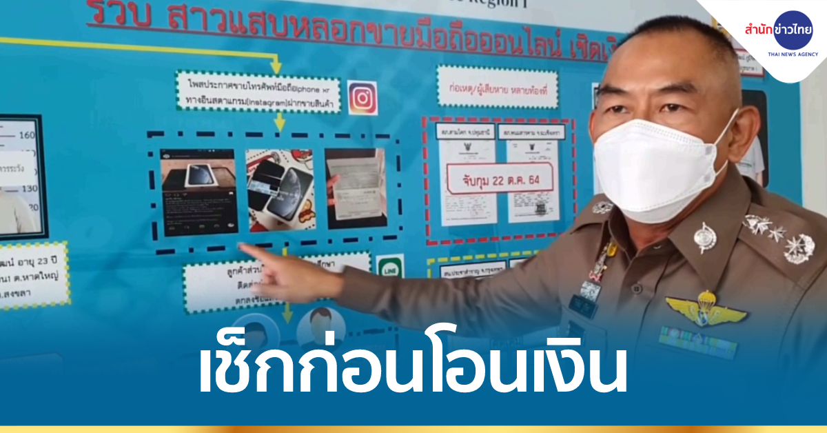 สงขลา 24 ต.ค.- ตำรวจภูธรภาค 1 จับสาวหลอกขายไอโฟนทางออนไลน์ มีผู้เสียหายหลายราย มูลค่านับล้าน พบเงินหมุนเวียนในบัญชีผู้ต้องหาสูงกว่า 7 ล้านบาท