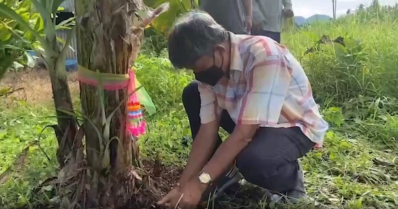 ผู้สื่อข่าวเดินทางไปยังบ้านนาน้ำเค็ม ต.หนองอิรุณ อ.บ้านบึง จ.ชลบุรี หลังทราบว่ามีชาวบ้านแห่ไปขอโชคลาภจากต้นกล้วยประหลาด 1 ต้น มีเครือมากถึง 4 เครือ มี 4 ปลี นับจำนวนกล้วยได้ถึง 170 ลูก โดยชาวบ้านนำผ้าสามสีมาผูก พร้อมกับจุดธูปไหว้ขอเลขเด็ดตามความเชื่อ หวังได้เลขเด็ดอาจจะมีโชคในงวดนี้