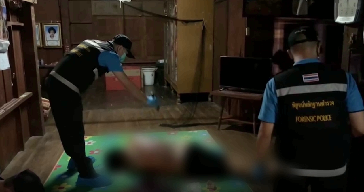 เมื่อเจ้าหน้าที่ตรวจสอบบริเวณบ้าน พบรอยเลือดหยดเป็นทางเกือบ 1 กิโลเมตร จึงระดมกำลังเดินตามรอยเลือดไปถึงบ้านอีกหลังหนึ่ง ก่อนเรียกเจ้าของบ้านลงมาสอบถามข้อมูล ทราบชื่อคือนายขาล อายุ 58 ปี