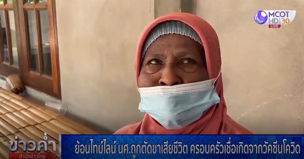 26 ต.ค. – หลังนักศึกษาวัย 20 ปี ชาวจังหวัดพังงา ซึ่งเข้ารับการฉีดวัคซีนโควิด-19 สูตรไขว้เป็นเข็มที่ 2 จากนั้นมีอาการป่วยจนต้องถูกตัดขาซ้าย เมื่อช่วงเดือนที่ผ่านมา วันนี้นักศึกษาคนดังกล่าวเสียชีวิตแล้ว ท่ามกลางความเศร้าเสียใจของครอบครัว