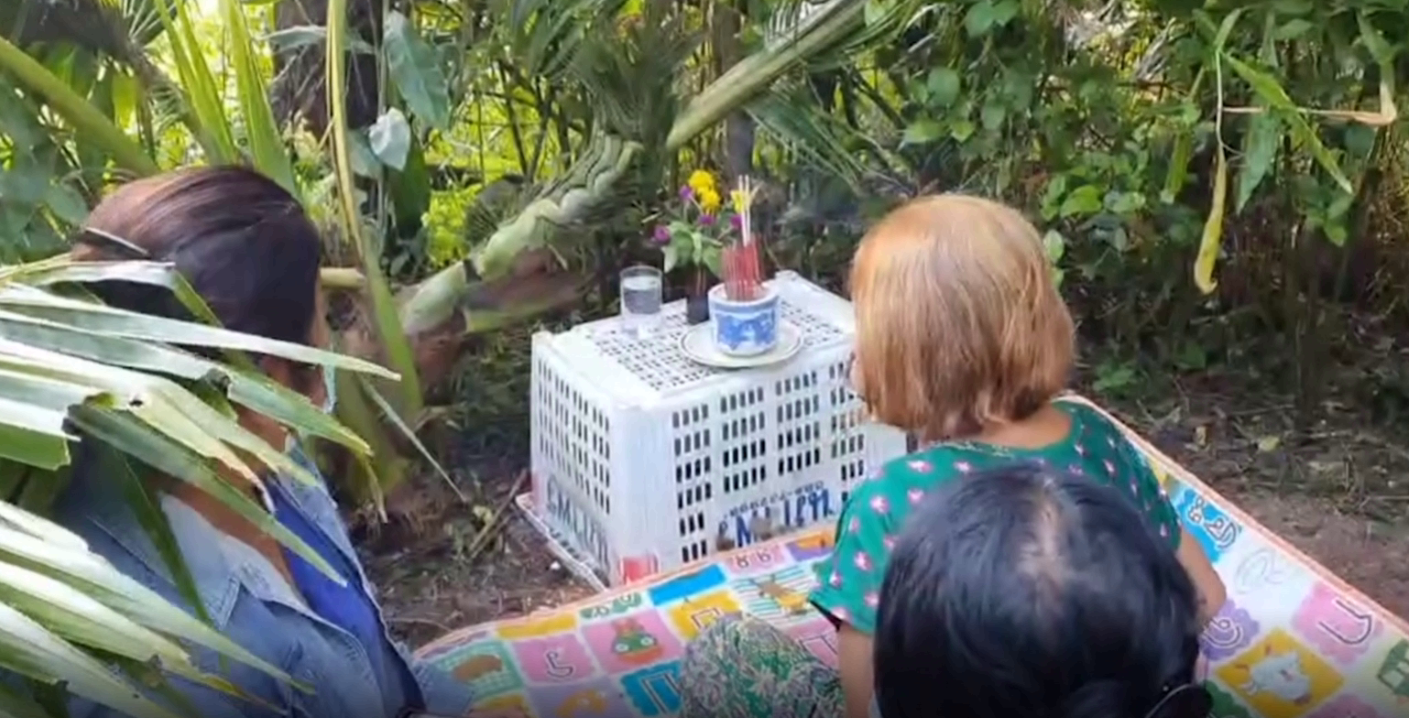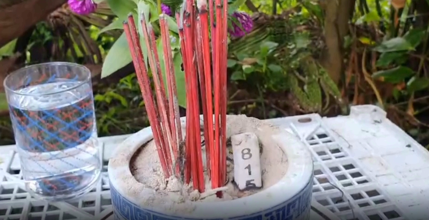 ชาวบ้านต่างทยอยมาจุดธูปเสี่ยงทาย ทาแป้งต้นมะพร้าวน้ำหอม พร้อมนำโทรศัพท์มือถือมารอถ่ายส่องหาเลขเด็ดบริเวณหน้าบ้านเลขที่ 34 หมู่ 11 บ้านโชค ตำบลราม อำเภอเมือง จังหวัดสุรินทร์ เพื่อหาเลขเด็ดนำไปเสี่ยงโชคลาภ หลังพบว่ามะพร้าวต้นนี้ มีใบมะพร้าวแทงยอดออกมาคล้ายพญานาค