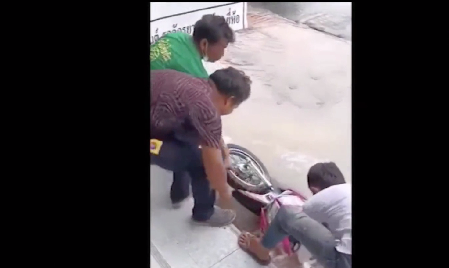 นอกจากนี้แล้วยังก็มีประชาชนขับรถ จยย. ขับมุ่งหน้าจะไปพัทยาใต้ ก่อนที่จะตกหลุมขนาดใหญ่ บริเวณดังกล่าวมีท่อประปาแตก น้ำไหลออกมาอย่างต่อเนื่อง คนขับรถ จยย.มองไม่เห็นหลุมทำให้รถ จยย. ตกหลุมลงไปเช่นเดียวกัน ก่อนที่คนขับจะตกจากรถ จยย. ไม่ไกลมากนัก ตัวเปียกและได้รับบาดเจ็บเพียงเล็กน้อย