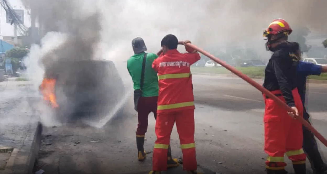รถดับเพลิงจากเทศบาลนครสมุทรสาคร, อบต.พันท้ายนรสิงห์, อบต.โคกขาม และอบต.ท่าทราย รวม 5 คัน พยายามฉีดน้ำสกัดเพลิงที่โหมลุกไหม้รถฟอร์จูนเนอร์ สีขาว ไม่ทราบหมายเลขทะเบียนอย่างรุนแรง ริมถนนเอกชัย ต.มหาชัย อ.เมือง จ.สมุทรสาคร ซึ่งมีเสียงระเบิดดังขึ้นต่อเนื่องหลายครั้ง จากถังน้ำมันรถและยางรถ ชาวบ้านที่อยู่ใกล้เคียงวิ่งหนีเอาตัวรอด เพราะเปลวเพลิงลุกไหม้อย่างรุนแรง ใช้เวลาประมาณครึ่งชั่วโมงเพลิงจึงสงบ แต่รถก็เสียหายทั้งคัน ผู้เห็นเหตุการณ์เล่าว่า ช่วงเช้าหม้อแปลงเสาไฟฟ้าระเบิดครั้งหนึ่งแล้ว เจ้าหน้าที่การไฟฟ้ามาเปลี่ยน เมื่อเสร็จเรียบร้อยขณะสับคัตเอาต์ลง ก็เกิดระเบิดขึ้นอีกครั้ง และมีสะเก็ดไฟตกใส่หลังคาร้านค้าบริเวณใกล้เคียง รวมทั้งรถฟอร์จูนเนอร์ที่เพิ่งมาจอดได้ไม่นาน ซึ่งมีน้ำมันจากหม้อแปลงที่ไหลย้อยลงมาด้านล่างพอดี ทำให้รถระเบิด และเกิดเพลิงลุกไหม้ขึ้น ส่วนเจ้าของรถยังไม่รู้ว่าเป็นใคร