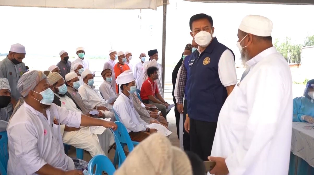 นายภิรมย์ นิลทยา ผู้ว่าราชการจังหวัดยะลา นำทีมเจ้าหน้าที่โรงพยาบาลยะลา ฉีดวัคซีนเข็มที่ 1 แก่ประชาชน ที่ศูนย์มัรกัสตาเซะ สถานที่ประกอบศาสนกิจขนาดใหญ่ของศาสนาอิสลาม เพื่อเร่งสร้างภูมิคุ้มกันหมู่ พร้อมทั้งเข้าพบนายอาดำ มูซอ ประธานศูนย์ดะวะห์ มัรกัสตาเซะ จ.ยะลา เพื่อสร้างความเข้าใจและความร่วมมือรณรงค์ฉีดวัคซีนป้องกันโควิด-19 ให้กับกลุ่มดะวะห์. – สำนักข่าวไทย