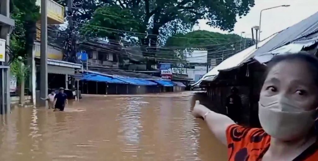 เชียงราย 1 พ.ย. – น้ำทะลักท่วมชายแดนแม่สาย จ.เชียงราย ตลาดสายลมจอยจมน้ำ บางจุดลึกถึง 1.50 เมตร