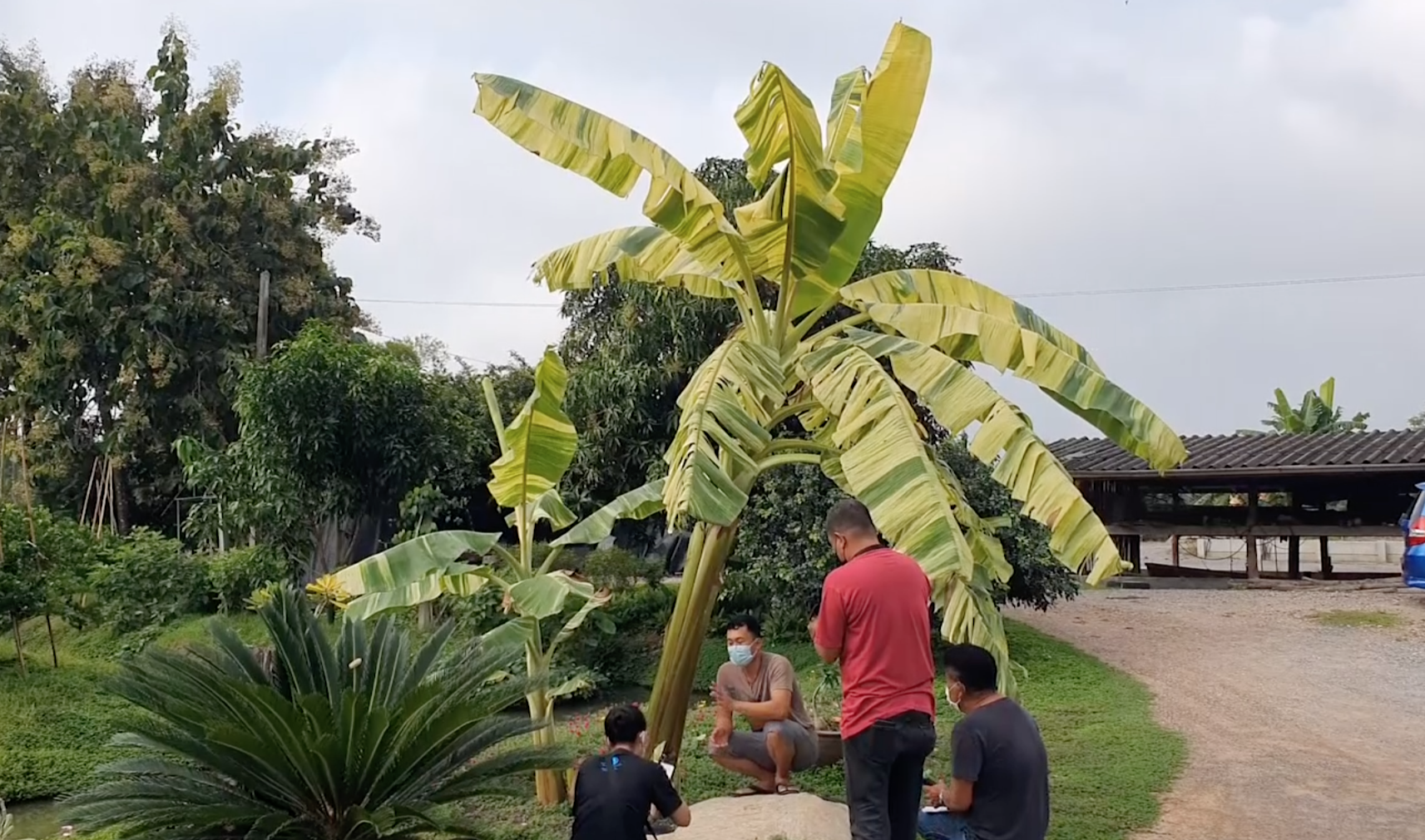 ผู้สื่อข่าวตามไปถึงสวนวินัยกระโจมทองพบกับนายณัฐพงค์ จิตรอำพัน อายุ 35 ปี ลูกชายของคุณลุงวินัย พาไปดูต้นกล้วยด่างที่ปลูกไว้บริเวณหน้าบ้าน จำนวน 1 กอ มีต้นกล้วยขนาดใหญ่สูงเกือบ 3 เมตรอยู่ 1 ต้น ต้นกล้วยเล็กสูงเกือบ 2 เมตร 1 ต้น และ หน่อกล้วยสูงประมาณ 30 เซนติเมตร อีก 3 หน่อ