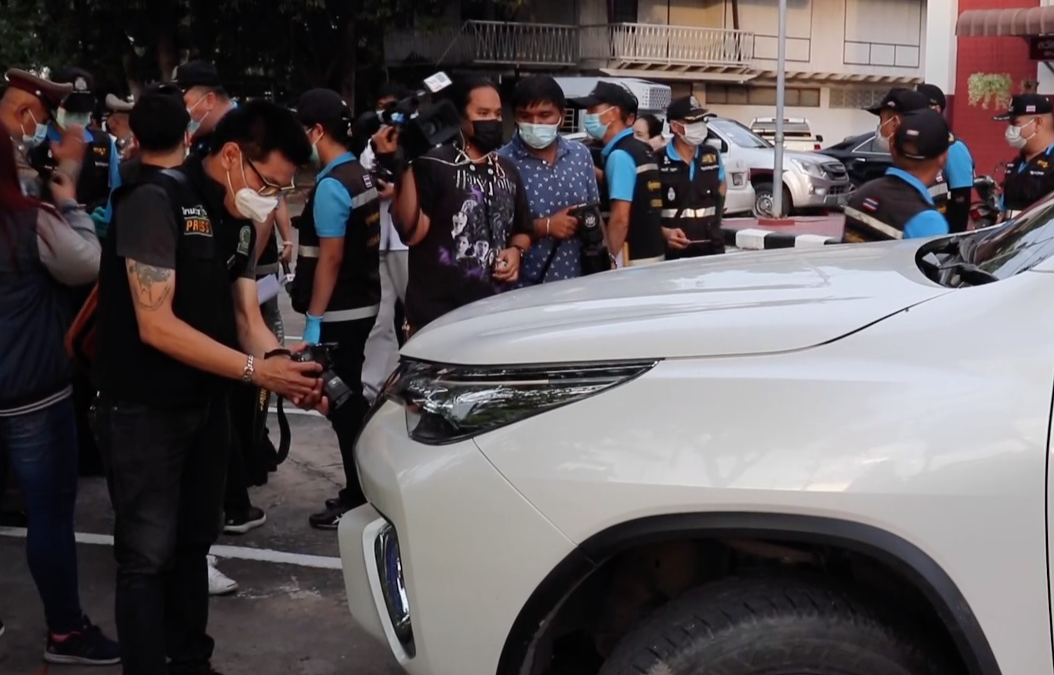 ขณะที่อีกหนึ่งความเคลื่อนไหวที่เกิดขึ้นบริเวณ สภ.เมืองสุพรรณบุรี เมื่อวานพบว่ามีรถโตโยต้า ฟอร์จูนเนอร์ สีขาว ซึ่งเป็นรถที่ขับชน “อ๊อฟ” กับ “บาส” ขับเข้าไปใน สภ.เมืองฯ จากนั้นชายคนหนึ่งได้ลงจากรถและแสดงตัวว่าเป็นเจ้าของ แต่ยืนยันความบริสุทธิ์ใจว่าไม่เกี่ยวข้องกับเหตุการณ์ ส่วนรถคันดังกล่าวถูกคนใกล้ชิดยืมไปใช้งาน