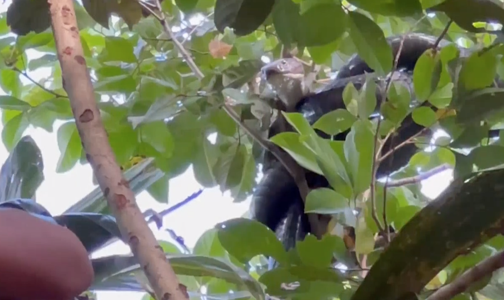 ต่อมาสิบเอกณัฐพล เสืองาม ครูฝึกอสรพิษวิทยา ทีมงานอาสาพิทักษ์งูเมืองจันท์ พร้อมเจ้าหน้าที่กู้ภัยฯ นำอุปกรณ์เดินทางไปตรวจสอบ เมื่อเดินทางมาถึงได้พบ นางจันทรา เจ้าของสวนผู้แจ้งพร้อมกับกลุ่มชาวบ้านที่ทราบข่าวกำลังยืนเงยหน้าเพ่งดูงูจงอาง เลื้อยอยู่บนยอดกิ่งต้นเงาะที่สูงจากพื้นดินกว่า 10 เมตร จากนั้นทีมอาสาพิทักษ์งู ใช้บันไดปีนขึ้นไปบนต้นเงาะ พบงูจงอางยังขดตัวรัดกับกิ่ง จ้องมองเจ้าหน้าที่พร้อมฉกสู้ตลอดเวลา ก่อนเลื้อยหนีสูงขึ้นไปอีก