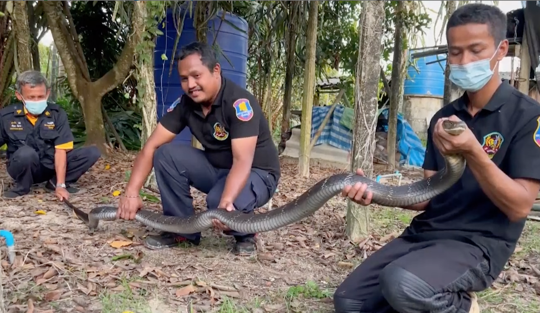 จากนั้นเจ้าหน้าที่ตัดกิ่งไม้ให้ง่ายต่อการจับงู ทันที่ที่งูจงอางตกถึงพื้นก็ชูคอสูงเพื่อป้องกันตัว ทำให้สิบเอก ณัฐพล ที่รับการฝึกฝนมาใช้มือเปล่าค่อยๆ คว้าจับงูได้สำเร็จ จากการตรวจสอบงูจงจางตัวดังกล่าว มีความยาวกว่า 4 เมตร น้ำหนักราว 10-13 กิโลกรัม.-สำนักข่าวไทย