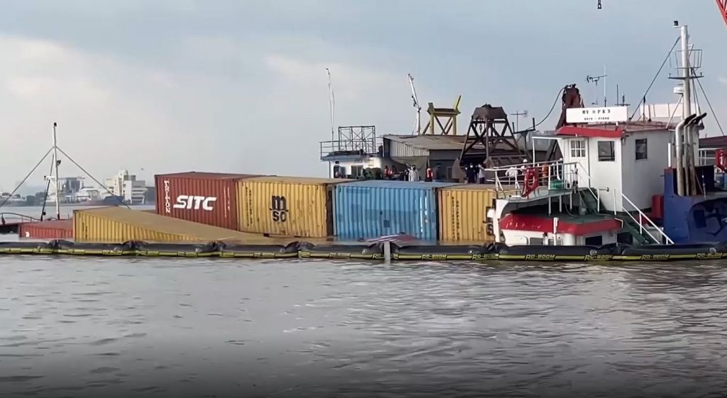 โดยนายภูริพัฒน์ ธีระกุลพิศุทธิ์ รองอธิบดีด้านความปลอดภัย กรมเจ้าท่า กล่าวว่าได้กำชับให้เจ้าของเรือเร่งกู้เรือและตู้สินค้าที่ส่วนใหญ่เป็นสินค้าเกษตร ให้แล้วเสร็จภายใน 3 วัน และสั่งการให้เรือทุกลำที่จะใช้เส้นทางผ่าน ต้องใช้ความระมัดระวังสูงสุด ในส่วนน้ำมันของเรือที่มีจำนวนหลายตัน ตอนนี้ใช้ทุ่นล้อมเรือ เพื่อไม่ให้น้ำมันรั่วไหลลงแม่น้ำแล้ว คาดเปิดทางเดินเรือปกติได้ภายในวันพรุ่งนี้ (3 พ.ย.).-สำนักข่าวไทย