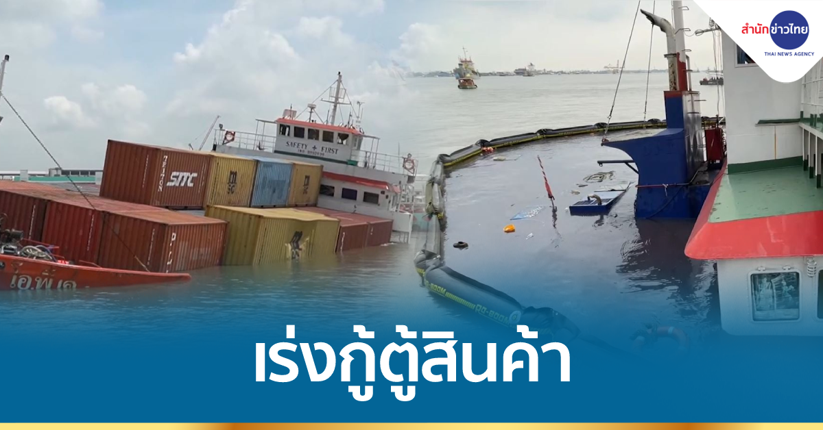 สมุทรปราการ 2 พ.ย.-เหตุเรือบรรทุกสินค้าชนกันกลางเจ้าพระยาหน้าศาลากลางจังหวัดสมุทรปราการ เจ้าหน้าที่กำลังเร่งกู้ตู้สินค้า พร้อมล้อมน้ำมันหลายตันที่มีอยู่ในเรือไม่ให้รั่วลงแม่น้ำ