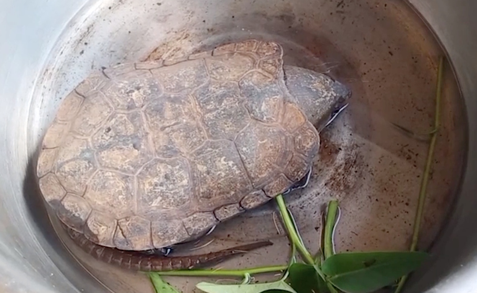 เชียงใหม่ 3 พ.ย.- ชาวบ้านดอยสุเทพ จ.เชียงใหม่ พบเต่าปูลู สัตว์ป่าหายากใกล้สูญพันธ์ หนีน้ำป่าหลากจากลำห้วย ปีนเข้าบ้านชาวบ้าน
