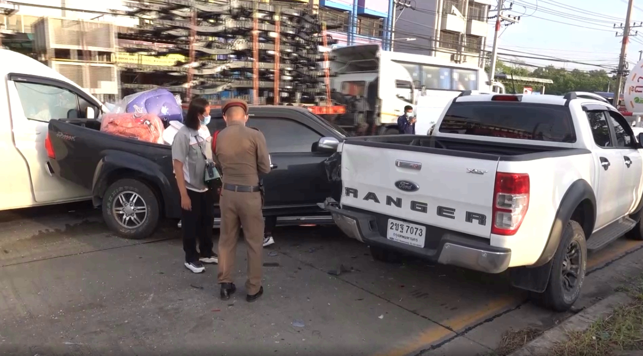 เหตุเกิดบริเวณก่อนถึงสามแยกไฟแดง บ้านโพธิ์-หัวเนิน ถนนสิริโสธร ขาเข้าฉะเชิงเทรา รถตู้รับส่งพนักงานที่นายธีรพงศ์ ศาสตร์ศิริ เป็นคนขับพุ่งชนท้ายรถกระบะ อีซูซุ ดีแมค สีดำ ของนายบุญยัง โยธิโน เต็มแรง รถไถลไปชนกับรถที่จอดติดไฟแดงอยู่เลนขวาอีก 3 คัน พังเสียหาย และมีผู้ได้รับบาดเจ็บ 14 คน โดยรถตู้รับส่งพนักงาน ได้รับบาดเจ็บทั้งคัน 12 คน รวมทั้งคนขับ เจ้าหน้าที่กู้ภัยเร่งปฐมพยาบาลก่อนนำส่งโรงพยาบาลบ้านโพธิ์ 3 คน นำส่งโรงพยาบาลจุฬารัตน์ 11 จำนวน 9 คน ส่วนนายบุญยัง คนขับรถกระบะที่ถูกชน และภรรยาบาดเจ็บเล็กน้อยให้การว่า ขณะกำลังขับรถมุ่งหน้าเข้าฉะเชิงเทรา มาถึงที่เกิดเหตุรถเลนขวาจอดต่อแถวติดไฟแดง กำลังจะเปลี่ยนเลนเบี่ยงไปทางซ้าย และถูกรถตู้รับส่งพนักงานขับมาชนท้ายเต็มแรง ขณะที่นายธีรพงศ์ คนขับรถตู้รับส่งพนักงานเล่าว่า ขณะขับรถไปส่งพนักงานทั้ง 11 คนกลับบ้าน มาถึงที่เกิดเหตุ ตนขับเลนกลาง จู่ๆ รถกระบะของนายบุญยังขับเปลี่ยนเลนออกมากะทันหัน ทำให้ตนเบรกไม่ทันชนท้ายเต็มคัน.-สำนักข่าวไทย