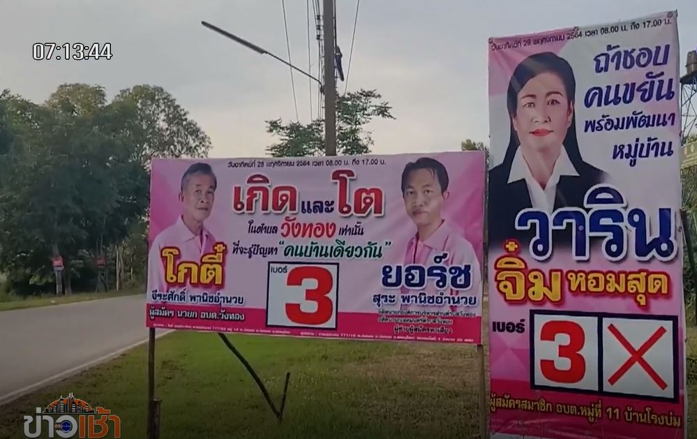 นี่เป็นป้ายแนะนำตัวของนางวาริน หอมสุด ชื่อเล่นว่า จิ๋ม ผู้สมัครสมาชิกสภาองค์การบริหารส่วนตำบลวังทองราย ซึ่งได้ติดตั้งป้ายแนะนำตัวเอาไว้ในหมู่บ้าน รวม 6 ป้าย เหมือนผู้สมัครรายอื่น แต่ที่สะดุดตาคือการวางตำแหน่งของชื่อจริง ชื่อเล่น และนามสกุล ทำให้ชื่อเล่นเป็นติดกับนามสกุล “วาริน จิ๋ม หอมสุด”