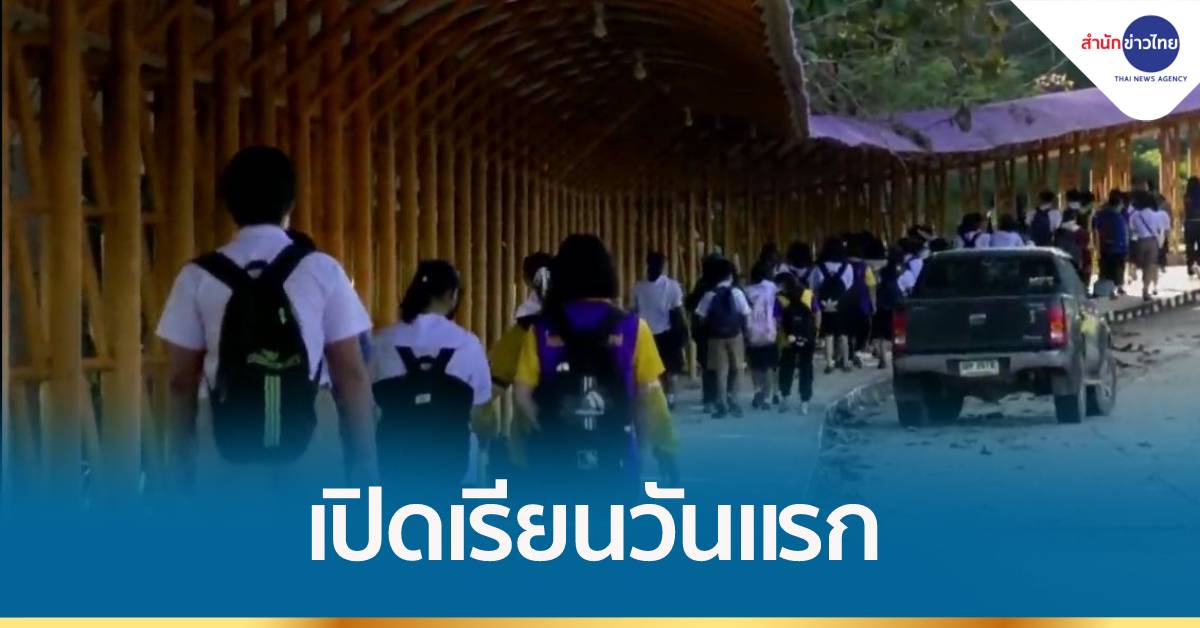 ที่หน้าโรงเรียน มีบรรดาผู้ปกครองทยอยมาส่งบุตรหลาน และยังคงคุมมาตรการเข้มงวดตรวจคัดกรองโควิด ทั้งวัดไข้ และให้ล้างมือก่อนเข้าภายใน โรงเรียน จากการสอบถามนักเรียนที่มาเรียนวันนี้ต่างคลายกังวลและมั่นใจในมาตรการของโรงเรียน ส่วนผู้ปกครองอยากให้ลดกิจกรรมหน้าเสาธง เพื่อเพิ่มความปลอดภัย. – สำนักข่าวไทย