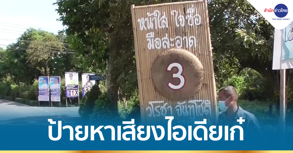 ผู้สมัคร อบต. หลายรายต่างหากลยุทธ์วิธีต่างๆ ที่จะดึงความสนใจของประชาชน ซึ่งป้ายหาเสียงส่วนใหญ่ที่นิยมใช้ป้ายอิงค์เจ็ตที่มีสีสันสวยงาม แต่ที่ จ.อ่างทอง มีป้ายหาเสียงที่แสนจะประหยัด เรียบง่ายและใช้เงินในการทำป้ายเพียงไม่กี่บาท ซึ่งสามารถสร้างความสนใจให้กับประชาชนที่ผ่านไปมา