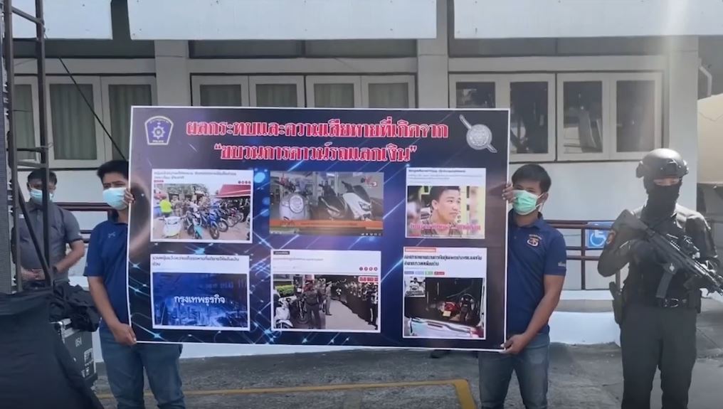 ที่สำนักงานตำรวจภูธรภาค 3 อ.เมือง จ.นครราชสีมา พล.ต.ท.สมประสงค์ เย็นท้วม ผู้บัญชาการตำรวจภาค 3 พร้อม พล.ต.ต.พรชัย นลวชัย ผู้บังคับการตำรวจภูธรจังหวัดนครราชสีมา แถลงผลจับกุมขบวนการดาวน์รถแลกเงิน ส่งขายประเทศเพื่อนบ้าน ได้ผู้ต้องหา 6 คน ยึดของกลางรถจักรยานยนต์ยี่ห้อต่างๆ 14 คัน