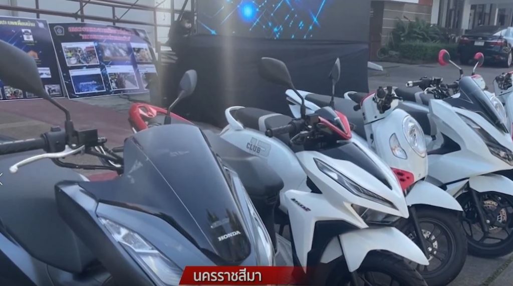 โคราช 10 พ.ย. – ตำรวจนครราชสีมารวบขบวนการดาวน์รถแลกเงิน ส่งขายประเทศเพื่อนบ้าน ยึดของกลางรถจักรยานยนต์ยี่ห้อต่างๆ 14 คัน ตรวจสอบเส้นทางการเงินพบมีเงินหมุนเวียนในบัญชีกว่า 100 ล้านบาท