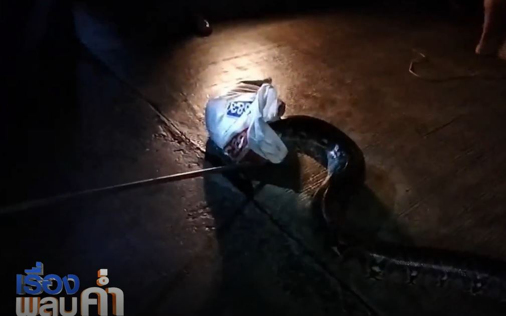 กระบี่ 12 พ.ย. – ชาวบ้านผวา! งูเหลือมยักษ์ยาวกว่า 5 เมตร หนักกว่า 30 กิโลกรัม นอนขดข้างเล้าไก่ เจ้าของบ้านแจ้งกู้ภัยช่วยจับ ต้องใช้กำลังถึง 4 คน จึงจับงูยัดใส่กระสอบได้ ก่อนปล่อยคืนสู่ธรรมชาติ