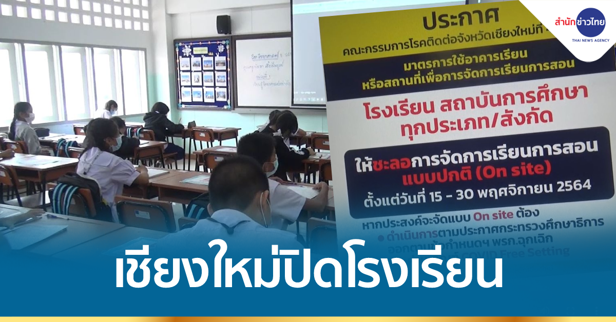 เชียงใหม่ 13 พ.ย.-ผู้ว่าฯ เชียงใหม่ สั่งปิดเรียนในรูปแบบ On site จนถึงวันที่ 30 พ.ย.64 หลังพบการติดเชื้อโควิดเป็นกลุ่มก้อน และขยายวงไปในหลายอำเภอของเชียงใหม่