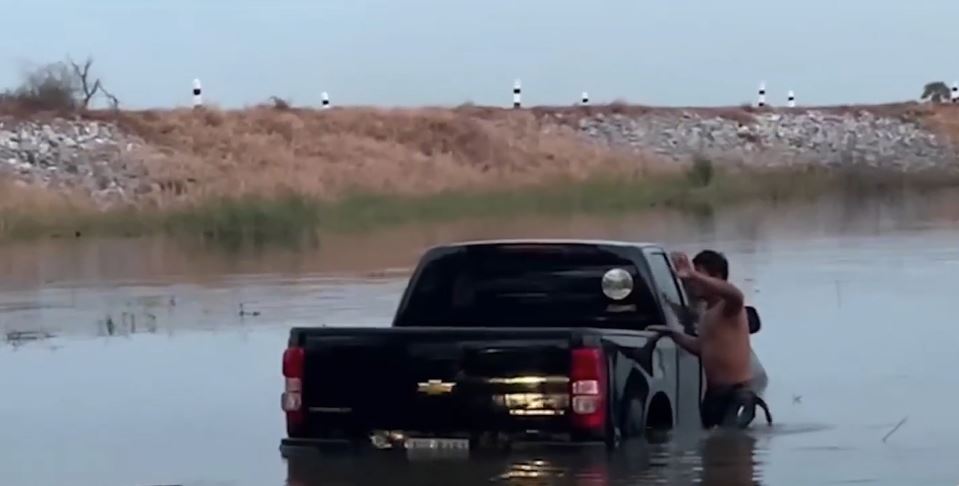 โคราช 13 พ.ย. – 2 หนุ่มขับกระบะพุ่งลงอ่างเก็บน้ำซับประดู่ อ.สีคิ้ว จ.นครราชสีมา อ้างเห็นสาวสวยกวักมือเรียกให้ขับลงน้ำ โชคดีรถเปิดกระจกไว้ จึงมุดออกมาได้ กู้ภัยใช้รถลากขึ้นฝั่งได้สำเร็จ ไม่มีใครได้รับบาดเจ็บ