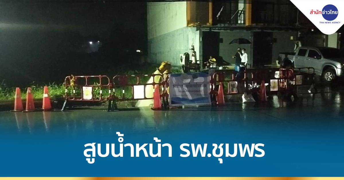 ชุมพร 13 พ.ย.-อธิบดีกรมชลประทาน ระบุโครงการชลประทานชุมพร เร่งสูบระบายน้ำออกจากหน้า รพ.ชุมพร อำนวยความสะดวกรับ-ส่งผู้ป่วย พร้อมระดมเครื่องจักร-เครื่องมือเข้าช่วยคลี่คลายสถานการณ์น้ำท่วมเส้นทางสัญจรเป็นการด่วน