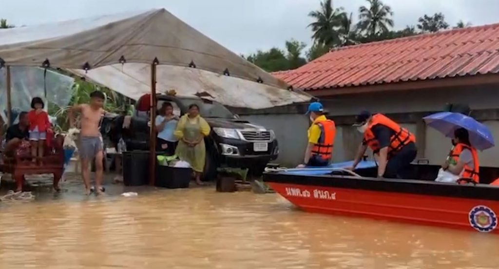 ส่วนที่ อ.หลังสวน กำลังพลกองพันทหารปืนใหญ่ที่25 ค่ายเขตอุดมศักดิ์ จ.ชุมพร พร้อม ยุทโธปกรณ์ เข้าช่วยเหลือประชาชนที่ประสบอุทกภัยฉับพลัน ขนย้ายเครื่องเครัวขึ้นที่สูง และขนย้ายยานพาหนะออกจากพื้นที่ ม.9 ต.บางมะพร้าว อ.หลังสวน ให้อยู่ในจุดที่ปลอดภัย เนื่องจากมวลน้ำเริ่มหลากท่วมพื้นที่ปลายน้ำ ก่อนจะไหลลงทะเล. – สำนักข่าวไทย