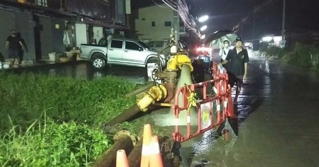 ชลประทานชุมพรเร่งช่วยสูบน้ำหน้าโรงพยาบาลชุมพร