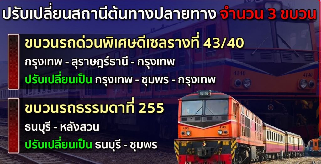 - ขบวนรถธรรมดาที่ 255 ธนบุรี – หลังสวน ปรับเปลี่ยนเป็น ธนบุรี – ชุมพร