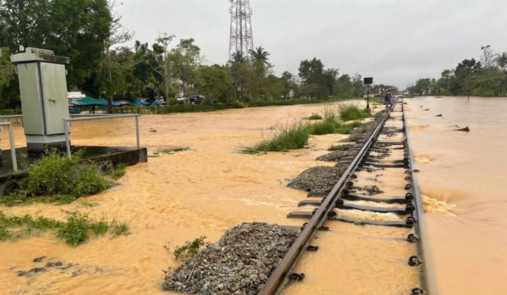 ขณะที่การรถไฟแห่งประเทศไทย ประกาศด่วนปิดทางเส้นทางสายใต้ ช่วงระหว่างสถานีสวี-เขาสวนทุเรียน ตั้งแต่เวลา 20.25 น. เมื่อคืนนี้ หลังน้ำหลากท่วมทางรถไฟระหว่างสถานีสวี-เขาสวนทุเรียน อ.สวี ช่วงบริเวณหลักกิโลเมตรที่ 500/15-501/8 ระยะทางประมาณ 80 เมตร เกรงกระทบความปลอดภัยการเดินรถ น้ำยังหลากท่วมถนนเพชรเกษม ทำให้ไม่สามารถขนถ่ายผู้โดยสารทางรถยนต์ได้ ส่งผลผู้โดยสารที่เดินทางมากับขบวนรถต้องหยุดรอเปิดทาง 8 ขบวน