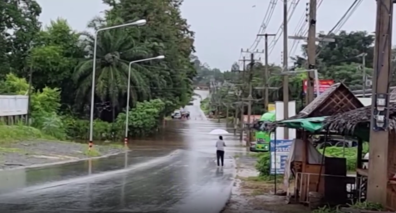 สถานการณ์ฝนตกหนักน้ำป่าหลากบนถนนเอเชีย 41 ตั้งแต่อำเภอหลังสวน อำเภอทุ่งตะโก จนถึงอำเภอสวี รถทุกชนิดสามารถเดินทางได้ แต่บางช่วงจะมีน้ำท่วมขังสูงประมาณ 20 ซม. และมีหลุมขนาดใหญ่อยู่ทั้ง 2 ช่องการจราจรทั้งขาขึ้นและขาล่อง เจ้าหน้าที่แขวงการทางชุมพรเร่งซ่อม ปรับปรุง แต่เป็นไปด้วยความล่าช้า เนื่องจากมีฝนตกตลอดเวลา ตั้งแต่ช่วงเช้า หนักสลับเบาตลอดเวลา