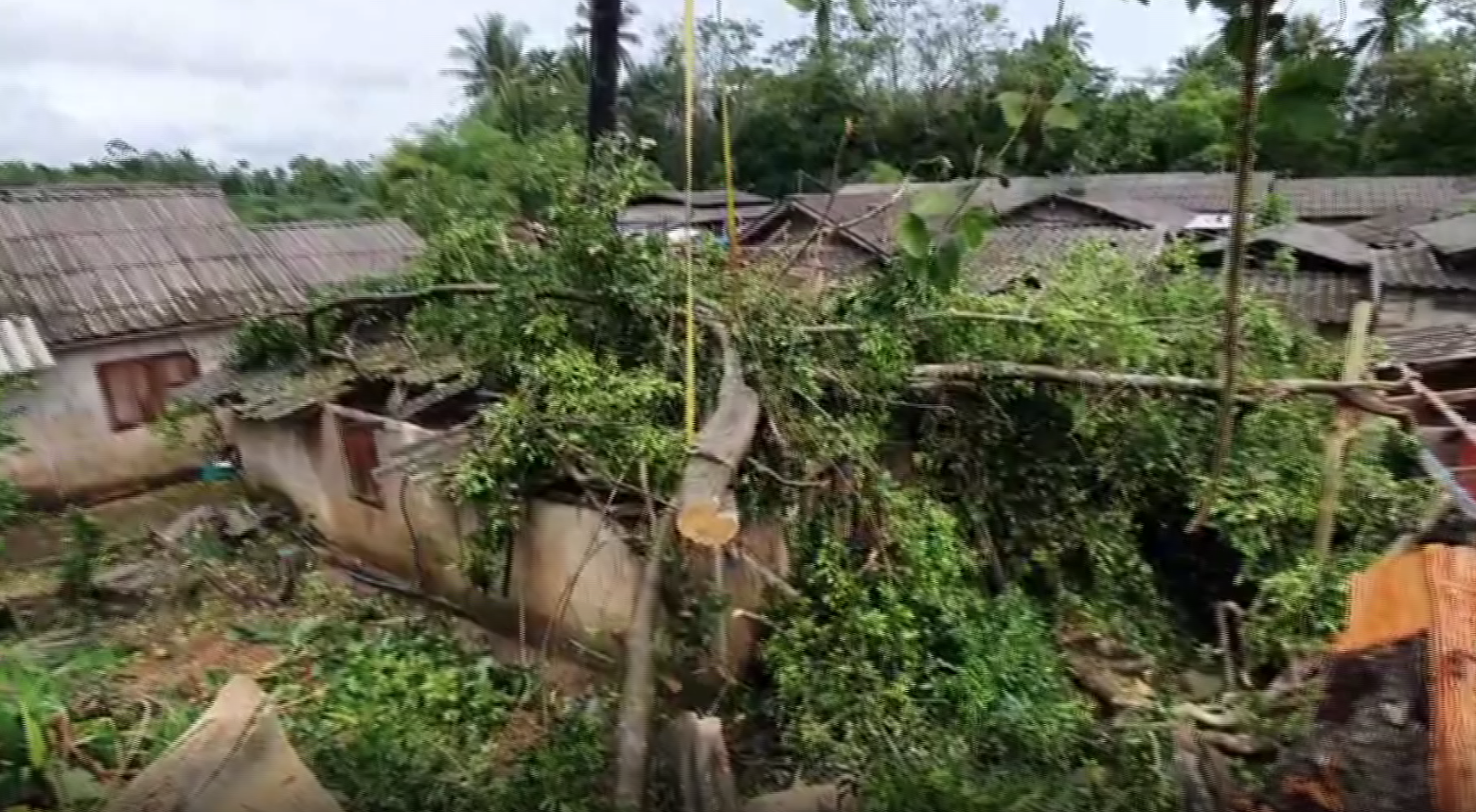 ที่หมู่ที่ 2 ตำบลพ้อแดง อำเภอหลังสวน จังหวัดชุมพร ต้นไทรและต้นโพธิ์ อายุกว่า 200 ปี ล้มทับหลังคาบ้าน 5 หลัง นางวรพร พรหมขจร อายุ 55 ปี เล่าว่าขณะอยู่ภายในบ้านพร้อมลูกชายอีก 2 คนได้ยินเสียงแชะๆ 3 ครั้งแล้วเห็นต้นไม้ล้มทับหลังคาบ้านจึงรีบวิ่ง แต่ปรากฏว่าลูกชายคนหนึ่งโดนต้นไม้ล้มทับนอนแน่นิ่งไม่รู้สึกตัวจึงเรียกชาวบ้านมาทำการช่วยเหลือ แต่ปรากฏว่ารอบบ้านอีก 4 หลังก็โดนต้นไม้ขนาดใหญ่ล้มทับเช่นกัน ต่อมาเจ้าหน้าที่จากเทศบาลปากน้ําหลังสวนเทศบาลเมืองหลังสวน และองค์การบริหารส่วนตำบลพ้อแดง ได้นำกำลังชาวบ้านร่วมร้อยคนเดินทางมาตัดเศษกิ่งไม้ออกจากบ้านของชาวบ้าน แต่ไม่สามารถใช้กำลังของคนออกได้จึงรวบรวมเงินจ้างรถเครนขนาดใหญ่มายกเศษกิ่งไม้ และช่วยกันเลื่อยตัดไม้จนถึงเวลานี้ยังไม่สามารถนำต้นไม้ที่ล้มทับชาวบ้านทั้ง 5 หลังออกได้ทั้งหมด สร้างความเดือดร้อนแก่ชาวบ้านหลายสิบคนในหมู่บ้านดังกล่าว