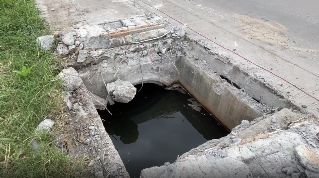 จากการตรวจสอบพบว่า ในที่เกิดเหตุยังมีก้อนเค้กของผู้ตายตกอยู่ข้างท่อระบายน้ำที่ผู้ตายตกลงไปหลังประสบอุบัติเหตุ ส่วนท่อระบายน้ำที่เปิดฝาอยู่มีความกว้างประมาณ 1 ตารางเมตร แต่ละท่อที่ถูกเปิดฝาทิ้งเอาไว้มีระยะห่างกันประมาณ 3 เมตร ไม่พบป้ายโครงการก่อสร้างหรือโครงการซ่อมบำรุงของผู้รับเหมาว่าดำเนินการโดยบริษัทใด ทราบจากคนในพื้นที่เพียงว่า ถนนเส้นนี้อยู่ในความดูแลของ อบต.บางเพียง ซึ่งได้ว่าจ้างให้บริษัทผู้รับเหมาเข้ามาดำเนินการซ่อมบำรุงท่อระบายน้ำขณะที่ล่าสุด ผู้รับเหมาได้นำหลอดไฟขนาดเล็กมาติดเพื่อให้สัญญาณแก่ผู้ใช้ทางในช่วงกลางคืน