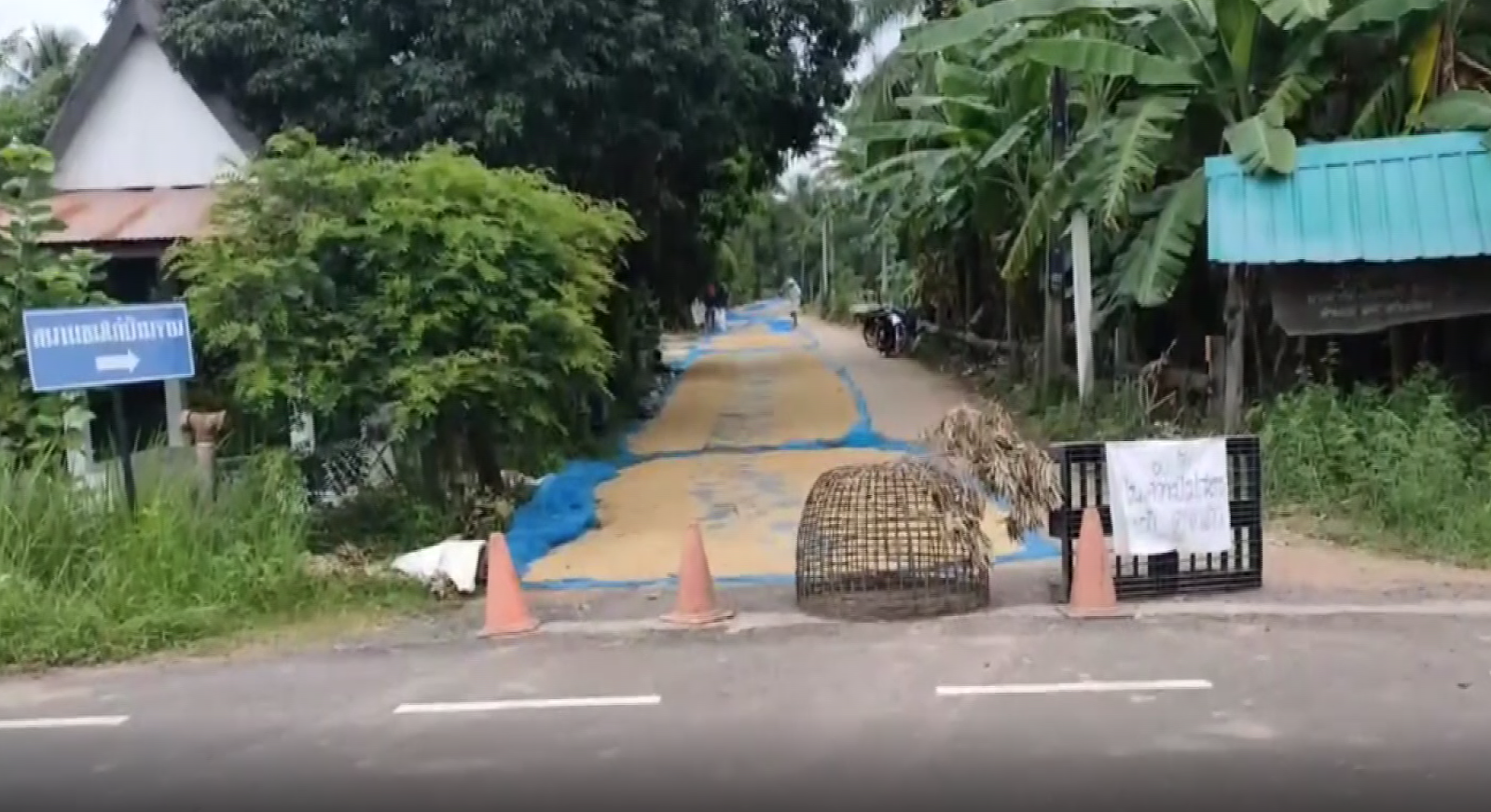 บุรีรัมย์ 16 พ.ย.- จบปัญหาดราม่าตากข้าว หลังเมียผู้ใหญ่บ้าน – ชาวนายอมถอยเอากรวยป้ายปิดกั้นถนนออก ลดพื้นที่ตากข้าวเหลือเลนเดียว