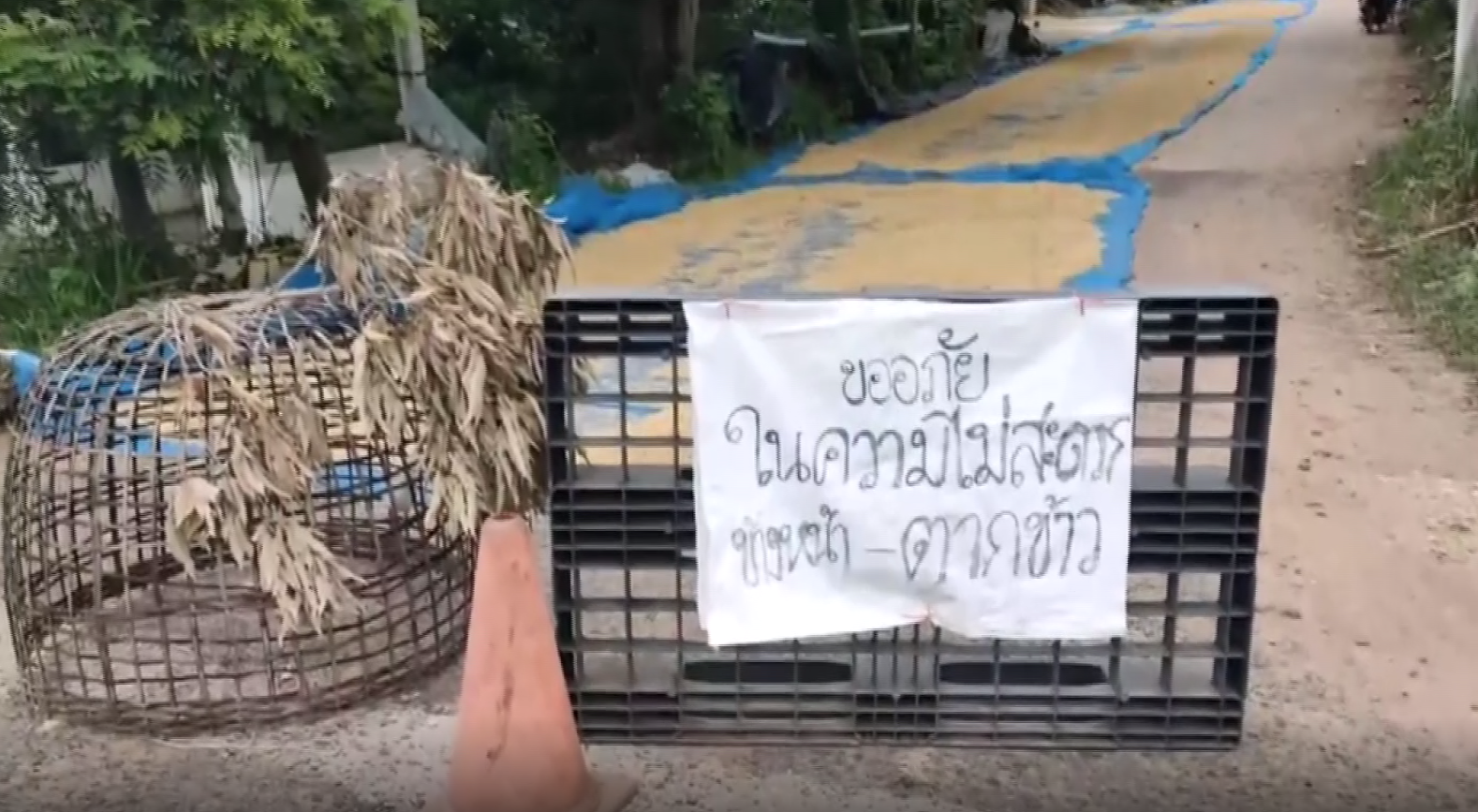 ด้านนายอำนาจ อรชุน ผู้ใหญ่บ้านบ้านจานออกมาชี้แจงว่า ทั้งตนและชาวบ้านในหมู่บ้าน ได้นำข้าวเปลือกมาตากบนถนนในซอยดังกล่าวจริง เนื่องจากสถานที่ตากในหมู่บ้านมีเพียงจุดเดียวคือ สนามตะกร้อบริเวณศาลากลางหมู่บ้าน แต่มีคนนำข้าวเปลือกไปตากจนเต็มแล้ว เพราะสถานที่สนามดังกล่าวก็เล็กนิดเดียว ตากแค่ 2 เจ้าก็เต็ม จพากันนำข้าวเปลือกออกมาตากตามถนนในซอย เพราะเห็นว่ามีคนเข้า-ออกน้อย แต่ยอมรับมีชาวนาบางคนตากเต็มซอย ซึ่งตนก็ไปบอกแล้วว่าให้ตากแค่เลนเดียวพอ ส่วนกรวยและป้ายที่ติดไว้หน้าปากซอย ก็เป็นของชาวนาคนอื่นที่ตากข้าวอยู่ต้นซอย ตนและภรรยาไม่ได้เป็นคนทำ และหลังจากมีการร้องเรียนก็ได้บอกให้เขาเอาป้ายดังกล่าวออกแล้ว พร้อมทั้งเตือนไม่ให้ตากข้าวเต็มถนนซอยอีก ให้เว้นไว้รถสัญจรด้วย เพื่อไม่ให้กระทบกับผู้สัญจร ซึ่งชาวนาก็พร้อมให้ความร่วมมือด้วยดี.-สำนักข่าวไทย
