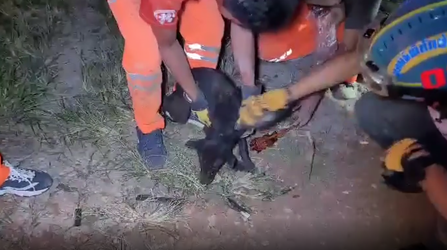 ใช้เวลาอยู่นาน ในที่สุดเจ้าหน้าที่ก็เจอลูกสุนัขในท่อ และใช้มือดึงตัวสุนัขออกมาได้สำเร็จ ท่ามกลางเสียงร้องดีใจของทีมกู้ภัย และชาวบ้านอีกหลายคนที่มาคอยลุ้นปฏิบัติการช่วยชีวิตลูกสุนัขครั้งนี้ ใช้เวลากว่า 6 ชั่วโมง ในการช่วยเหลือแบบข้ามคืน